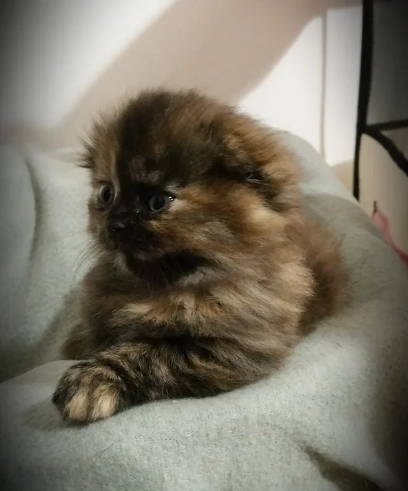 1 Femelle Highland fold Black Tortie en photo ci-dessous